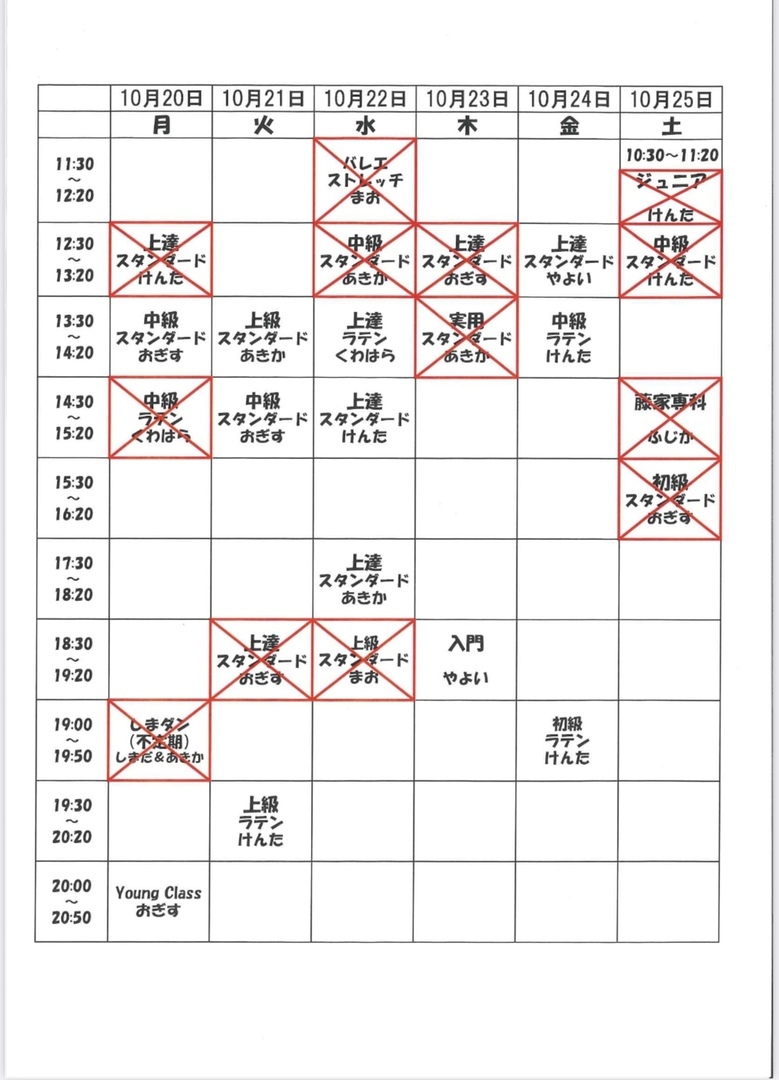 2021年10月21日11月Zoomオンラインレッスンスケジュール