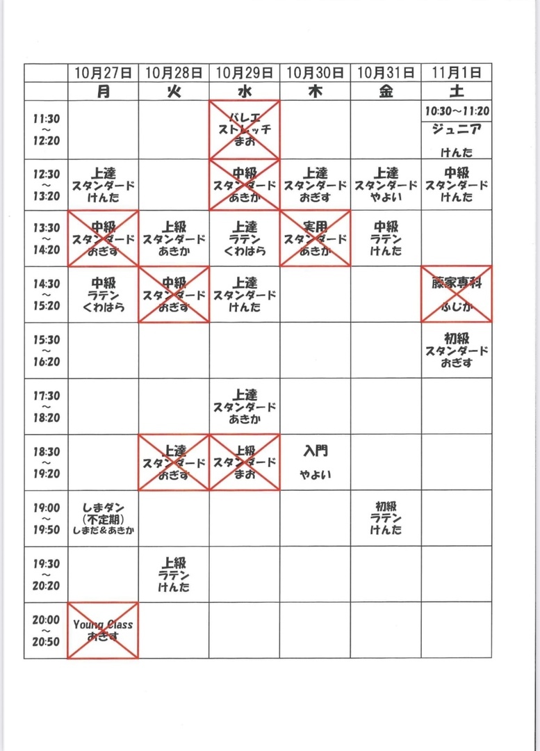 2021年10月21日11月Zoomオンラインレッスンスケジュール